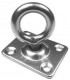 Pontet à anneau mobile sur platine rectangulaire en inox 304. Pontet disponible du diamètre 5 mm pour une platine longueur 35 mm, jusqu'au diamètre 8 mm pour une platine longueur de 50 mm.