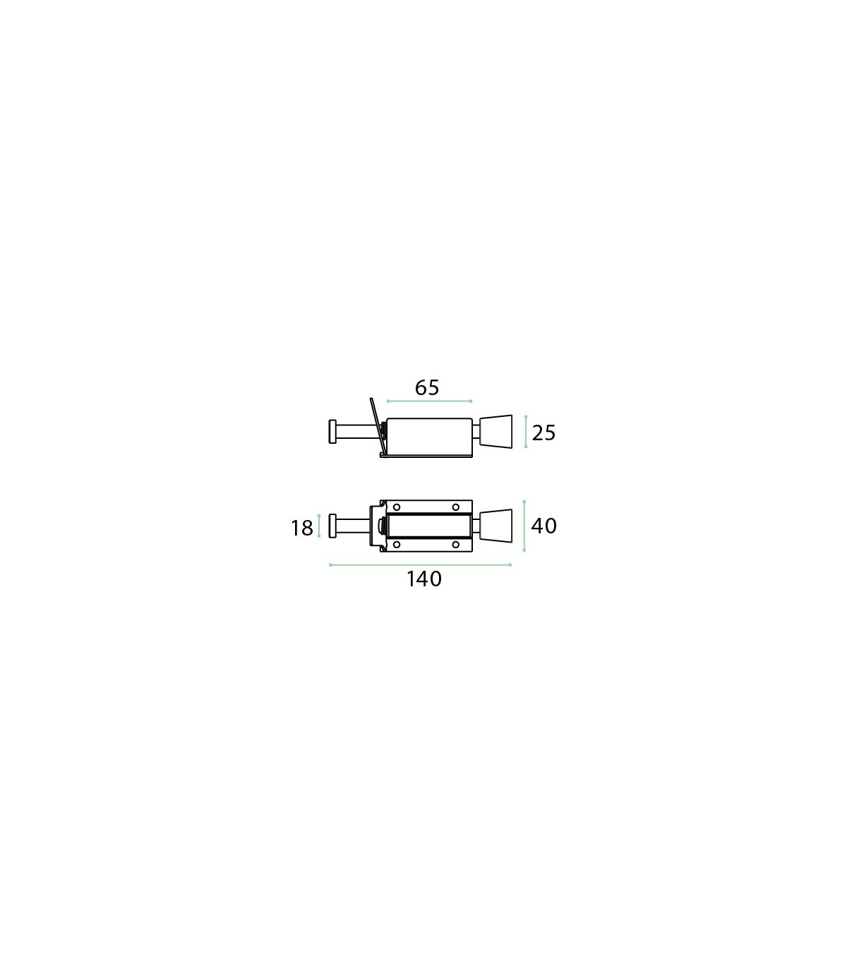 Hauteur 140 mm, largeur 40 mm, saillie 45 mm, diamètre du tampon caoutchouc 25 mm.