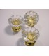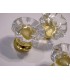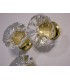 Poignée bouton de meuble taillé fleur en verre bullé transparent.