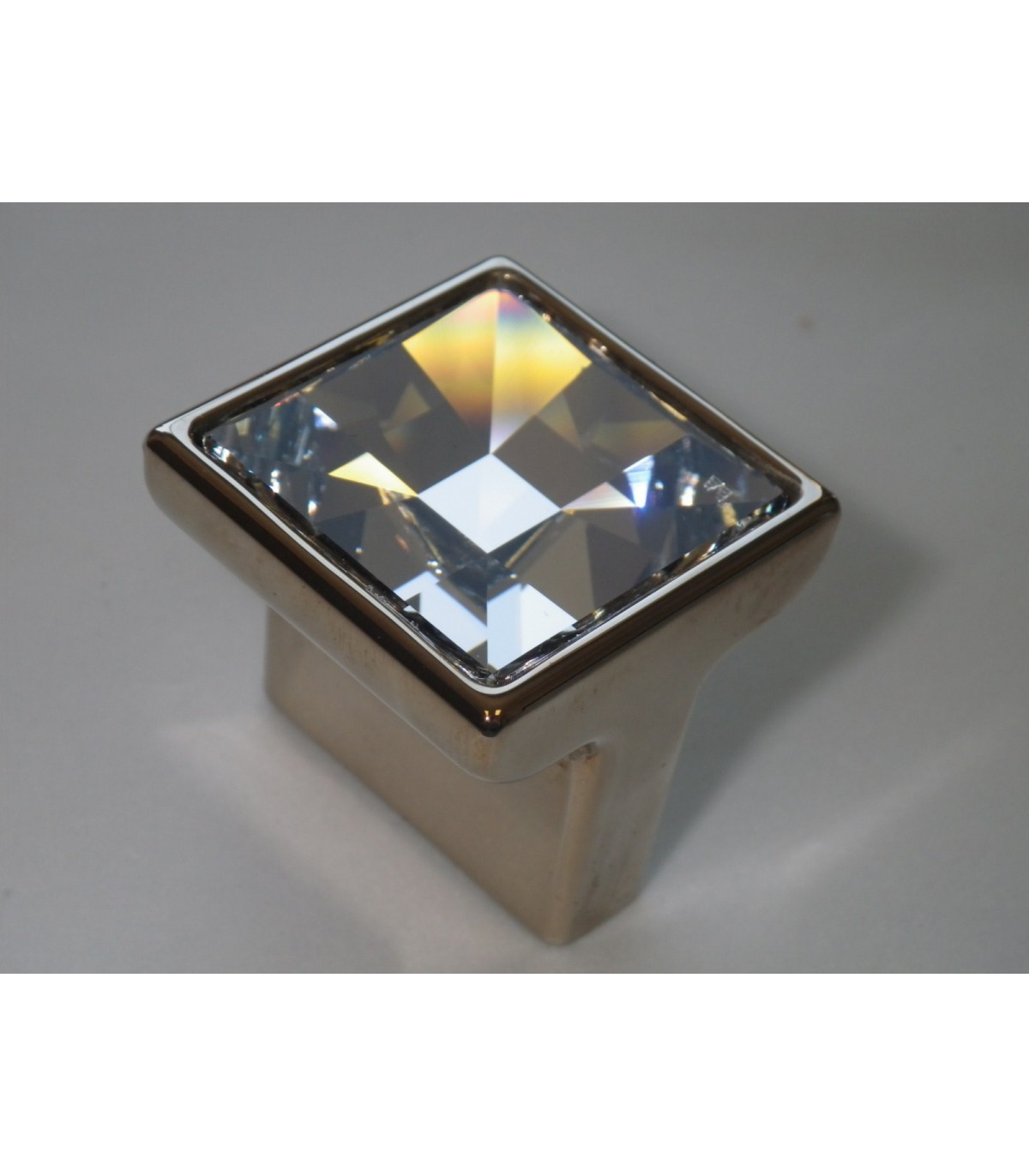 Poignée bouton face cristal. En cristal de Swarovski et base Zamak en nickel brillant. Dimensions : 30x30 mm - Hauteur 29 mm.