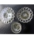 Design par ARIUS HOME, poignée bouton de meuble en verre transparent sur base laiton chromé brillant.