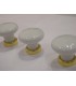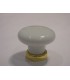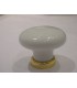 Bouton de meuble rond en porcelaine blanche sur une base en métal finition doré brillant. Disponible en diamètre 25, 30 et 37 mm.