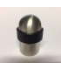 Butée de porte montage au sol, réalisée en inox satiné ou époxy noir mat et caoutchouc bandeau noir.