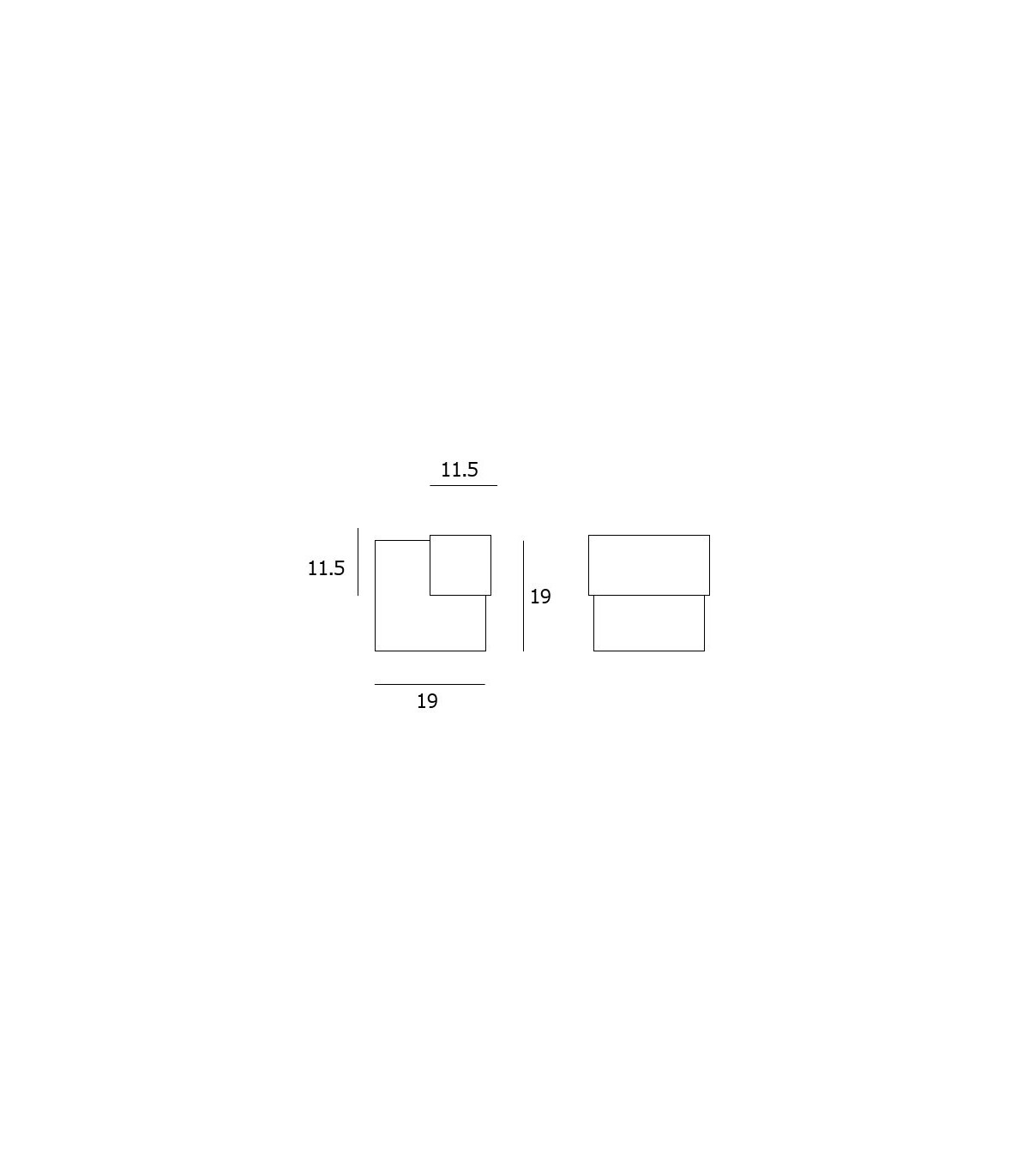 Carré de 19 x 19 mm - Hauteur 19 mm.
