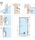 Pour le montage sur le verre prévoir deux trous diamètre 16 mm par paumelle, entraxe des trous : 45 mm à 34 mm du bord de la porte.