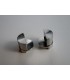 Paire de charnière pour vitrine en verre, montage verre sur verre. Fixation par collage UV. Ouverture extérieur. Charnière en inox AISI 304 finition brossé. Charnière disponible en diamètre 20 mm et 30 mm. La charnière est équipée d'une tige filetée permettant de décrocher la porte après le collage.
