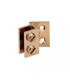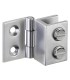 Charnière simple pour porte de vitrine en verre montage verre sur bois. Matiére laiton massif. Dimensions : Hauteur 25 mm - Largeur 19 mm. Pour porte de vitrine en verre d'épaisseur 4 à 6 mm. Sans encoche sur le verre, serrage par vis avec embout nylon.