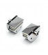 Paire de charnière pour porte de vitrine en verre. Matière métal, finition chromé brillant. Pour verre d'épaisseur 5 mm. Sans encoche sur le verre. Ouverture intérieur et extérieur.