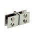 Charnière double pour porte de vitrine en verre. Montage verre sur verre. Matière laiton massif. Dimensions : Hauteur 25 mm - Largeur 56 mm. Pour verre d'épaisseur 6 à 8 mm. Sans encoche sur le verre, serrage par vis avec embout nylon. Capacité de charge : 10 kg par paire. Disponible en finitions : Chromé brillant - Laiton poli brillant, effet inox brossé et chromé mat velours.