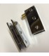 Set de 2 charnières pince pivot (1 haute et 1 basse) pour porte de vitrine en verre. Matière laiton massif. Dimensions : Hauteur 27 mm - Largeur 65 mm - Épaisseur 16 mm. Pour porte de vitrine en verre d'épaisseur 6 à 8 mm. Pour le montage de cette charnière aucunes encoches ni trous ne sont nécessaires. Serrage sur le verre par trois vis sans tête avec embout nylon. Charge maxi par paire de charnière : 10 kg.
