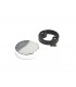 Charnière en métal nickel mat avec un cabochon diamètre 32 mm épaisseur 8 mm en nylon chromé brillant, doré brillant ou mat.