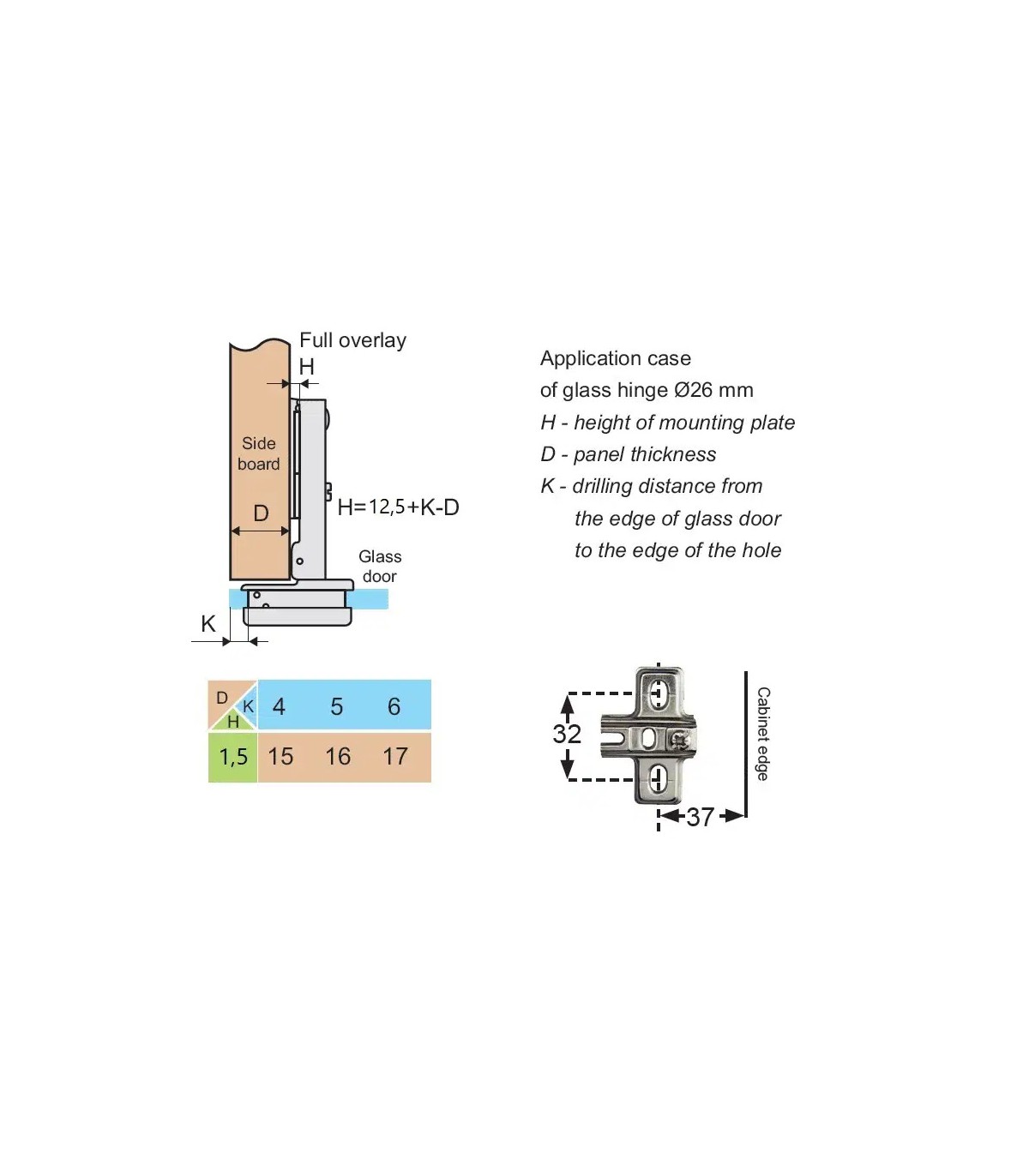 Sur le verre prévoir un perçage ø26 mm, plaque de montage H=1,5mm, à glisser, cache avant (cabochon) à commander séparément.