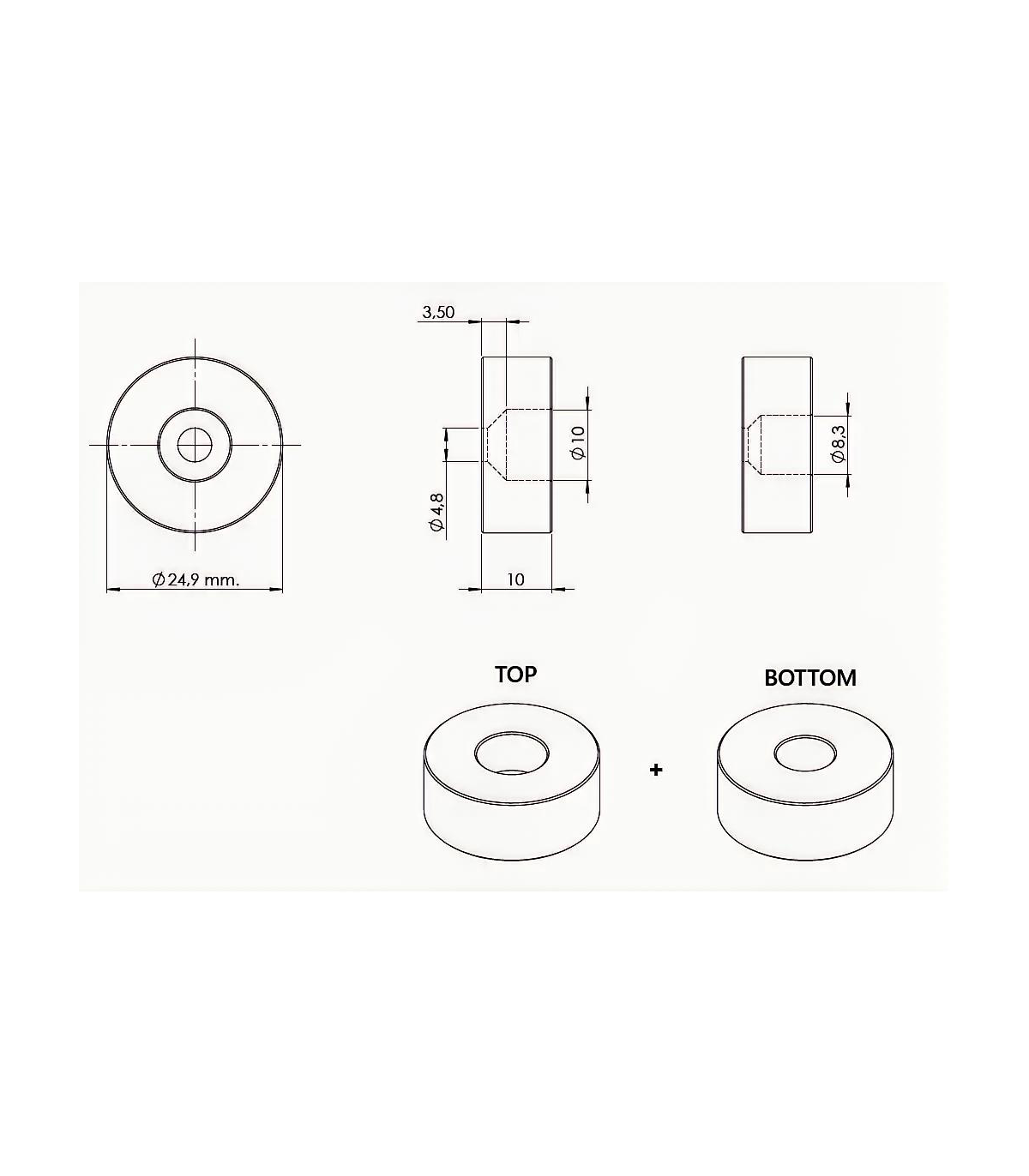 Set de deux douilles sol / plafond pour pivot avec doigt rétractable en acier, pivot libre pour volet décoratif.