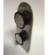 Hauteur 120 mm - Largeur 55 mm - Épaisseur 30 mm, 39 mm avec cabochons fraisés.