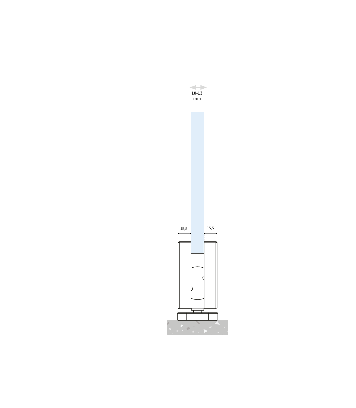 Les pivots supérieur et inférieur sont réglables sur deux axes, assurant une installation précise et flexible dans différents types d'applications techniques.