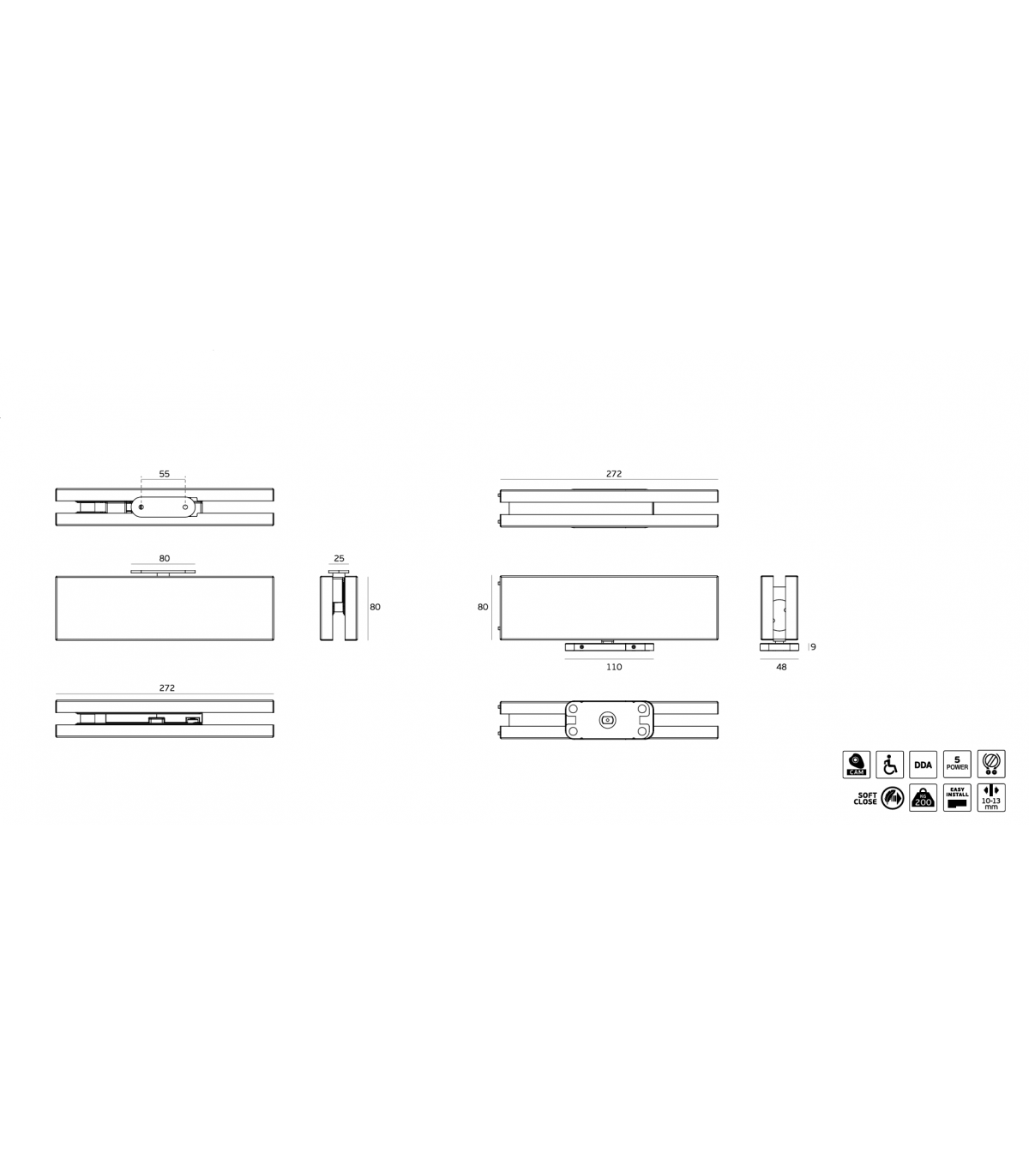 Avec la possibilité d'être installé à n'importe quel point sur la largeur de la porte, W360 GLASS SYSTEM offre une liberté de conception inégalée, que ce soit pour des portes placées au centre, des positions de pivot décalées ou des applications créatives du verre avec un flux bidirectionnel.