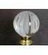 Boule départ de rampe d'escalier, départ de rampe en cristal de plomb (24%) ciselé à la main. Les parties en creux sont satinées. Elle à été taillée par Arius. Sur une embase en laiton massif poli brillant. Dimensions : Hauteur 140 mm, diamètre 100 mm, base Ø 54 mm. Montage à visser sur une tige filetée M10 fournie.