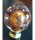 Boule départ de rampe d'escalier, départ de rampe en pâte de verre teinte Ambre, soufflé par Steinmetz. Sur une embase en laiton massif poli brillant. Dimensions : Hauteur 135 mm, diamètre 94 mm, base Ø 54 mm. Montage à visser sur une tige filetée M10 fournie. L'élément indispensable à la décoration de votre escalier.