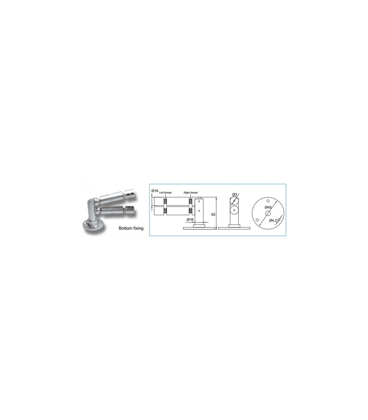 2 accroches basses avec filetage droite / gauche pour la tension du câble (à visser contre le mur) sur platine Ø 45 mm.