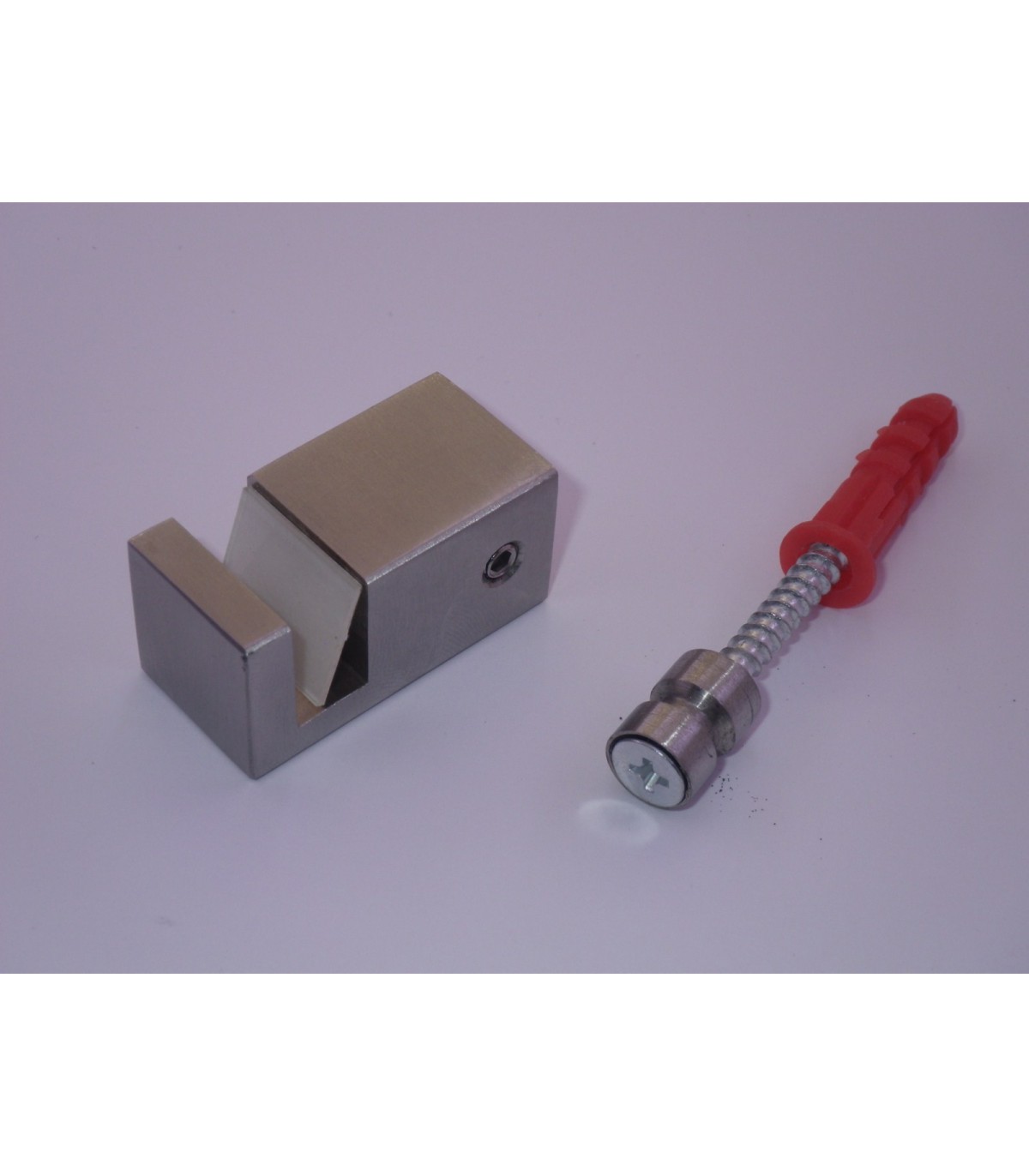 Support de fixation série Quadra pour miroir ou panneau en verre d'épaisseur 6 à 8 mm.