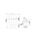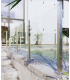 Système de garde-corps en aluminium et verre avec des poteaux en aluminium pré-assemblés, poteau de 58 x 58mm hauteur 1100mm, sur platine de 147 x 147 et 147 x 122mm équipée de deux trous Ø 14mm et avec un capuchon de couverture pour les vis de fixation.