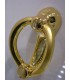 Heurtoir de porte série Elika. Réalisé en laiton massif, nous vous le proposons en finition laiton chrome satiné ou laiton poli et satiné. Dimensions : Hauteur 150 mm, largeur 100 mm. Fixation traversante sur la porte avec 2 trous entraxe 105 mm.