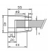 Hauteur 70 mm, longueur 55 mm. Livrée avec deux joints pour verre sécurit d’épaisseur 12 mm  mais aussi pour du verre feuilleté d’épaisseur 12.76 mm, 16.76 mm, 17.52 mm, 9.52 mm, 11.52 mm, 13.52 mm.