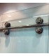 Kit roller série Clear-d system. Matière inox AISI 316 finition brossé. Pour porte coulissante en verre d'épaisseur 8 à 12 mm. Kit composé de quatre rollers un guide sol et deux butées d'arrêt. Poids maxi de la porte 120 kg. Distance maximum entre les rollers 1300 mm. Montage coulissant sur tube de diamètre 25 mm, avec articles associés.