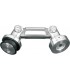 Raccord pour la fixation d'un volume en verre contre un mur. Pour verre d'épaisseur 10 à 12 mm. Ce connecteur permet la fixation d'un volume en verre contre un mur. Raccord disponible avec une longueur de 60 mm ou 103 mm.
