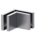 Fixation pour deux volumes en verre, permet la liaison et le maintien à 90° de deux volumes en verre d'épaisseur 10 à 12 mm entre eux. Réalisation en inox aisi 304 finition brossée. Montage avec encoche GC16 sur le verre.