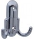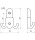 Patère en zamack double crochet avec fixation invisible. Hauteur 140 mm, largeur 65 mm. Disponible en finition Chromé brillant ou Nickel satiné (effet inox brossé).