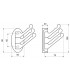 Patère en zamack triple crochet avec fixation invisible. Hauteur 140 mm, largeur 65 mm. Disponible en finition Chromé brillant, Nickel satiné (effet inox brossé), Doré brillant ou Chromé mat velours.