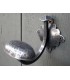 C'est une peinture de finition martelée qui habille cette patère en fer forgé. Sur une embase décorative à visser, cette patère porte manteau est disponible, avec une accroche de forme ovoïde. Dimensions : Hauteur 90 mm et épaisseur 80 mm.