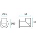 Patère sur rosace Ø 35 mm - Diamètre 21.5 mm - Hauteur 35 mm - Épaisseur 50 mm.