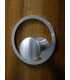 Patère Eccentric ronde en acier inoxydable finement brossé. Les patères de la collection Eccentric offrent de multiples possibilités de pose. Un seul axe de fixation permet un montage dans le sens qui vous plaira.