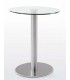 Pied de table central. Matière inox aisi304 finition brossée. Piétement diamètre 76 mm - Hauteur 730 mm. Patin anti glisse sous la base. Base pour collage UV diamètre 100 mm. Verre non compris.