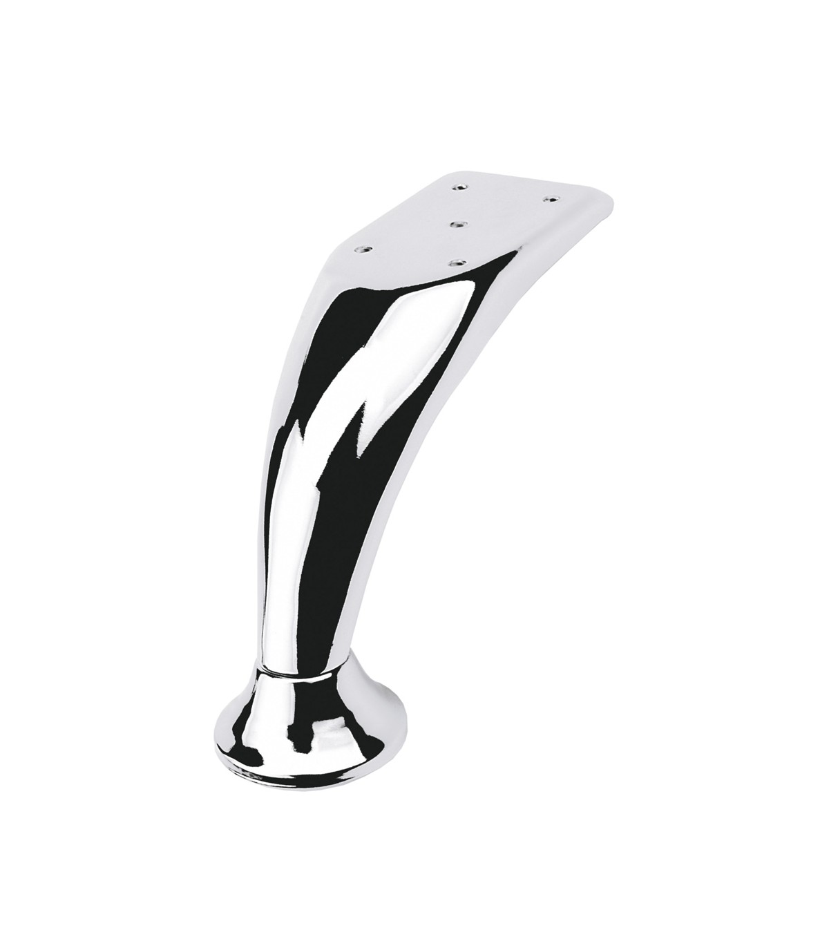 Pieds de meuble design profil incliné en métal moulé sous pression (zamak), disponible en hauteur 115 à 120 mm et en finition chromé brillant.