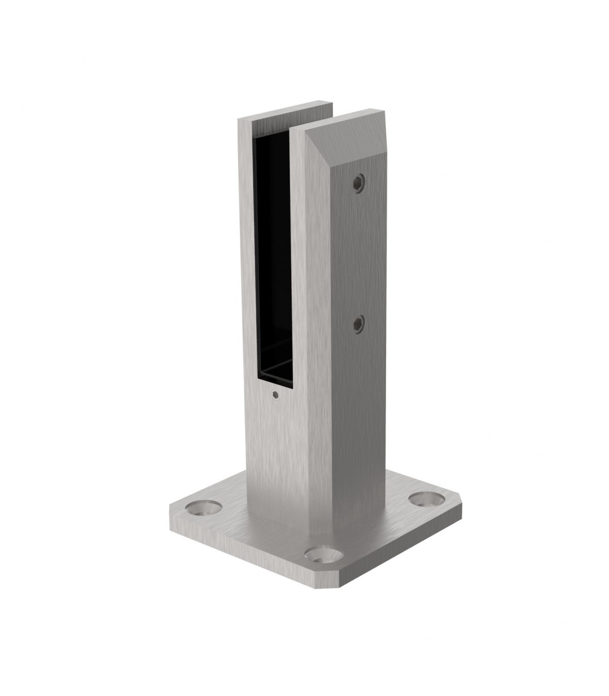 Pince à verre montage au sol série 6200 rectangulaire 182/50mm. Réalisée en inox aisi304 ou aisi316. Pour verre d'épaisseur 12 à 17.52mm.
