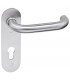 Paire de plaque courte forme arrondie avec découpe pour cylindre Européen. Réalisation en acier inoxydable AISI304 finement brossé. Plaque avec palier pour un meilleur maintien de la poignée.
