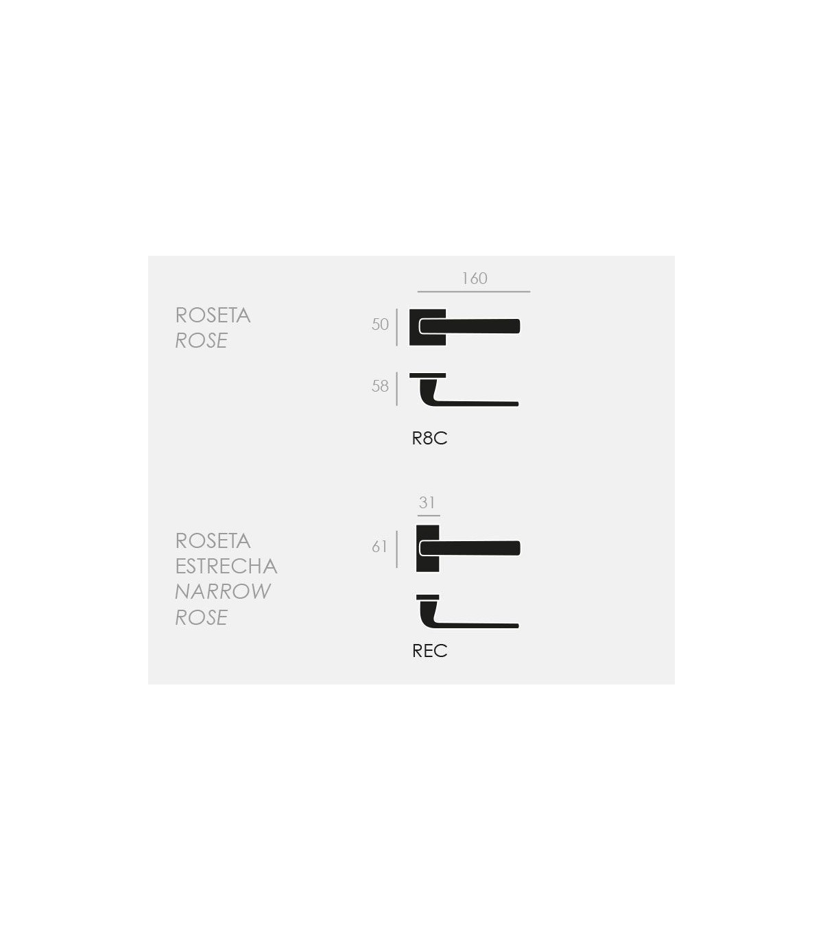 Ensemble livré avec une paire de rosace entrée de clé. Clé L (pour la chambre) - Clé I (pour la porte d'entrée munie d'un cylindre Européen) ou à condamnation sans voyant (pour la salle de bain ou les toilettes). La fonction Bec de cane correspond à une paire de poignée sur rosaces sans les rosaces de fonction.