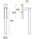 Dimensions : Poignée carré de 22 mm, hauteur 291 mm, sur rosace rectangulaire de hauteur 160 mm, largeur 32 mm, entraxe de fixation 80 mm.