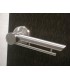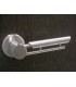 Paire de poignée béquille série 2001. Matière Inox aisi 304 finition brossée. Sur rosaces diamètre 53 épaisseur 9 mm. Livrée avec une paire de rosace entrée de clé L.
