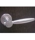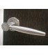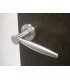 Paire de poignée béquille série 2005. Matière Inox aisi 304 finition brossée. Sur rosaces diamètre 53 épaisseur 9 mm. Livrée avec une paire de rosace entrée de clé L.