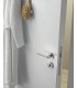 Paire de poignée béquille fil droit série J5. Matière Inox aisi 304 finition brossé. Sur rosaces diamètre 50 épaisseur 8 mm. Ressort de rappel intégré a la sous rosace métal. Ensemble pour carré de 7 et 8 mm (7 mm Norme Française).