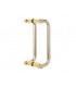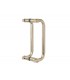Paire de poignée de porte en acier inoxydable AISI304 (DIN 4301) pour porte battante. Livrées avec les éléments nécessaires au montage sur portes en verre ou autre d’une épaisseur comprise entre 10 et 70 mm. Les supports sont réalisés en deux finitions différentes : finement émerisés au grain de 400 ou poli brillant puis revêtu TIN (nitrure de titane) pour un aspect doré pratiquement inaltérable.