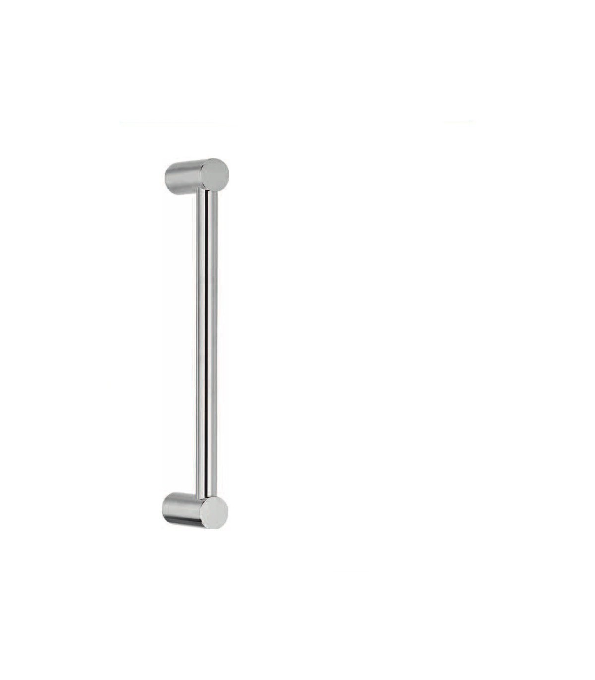 Poignée droite tube Ø 19 mm sur deux plots ronds Ø 30 mm pour porte d'entrée. Poignée droite en inox finition brossé. Entraxes disponibles : 250 - 300 - 350 - 425 - 600 - 900 et 1250 mm.