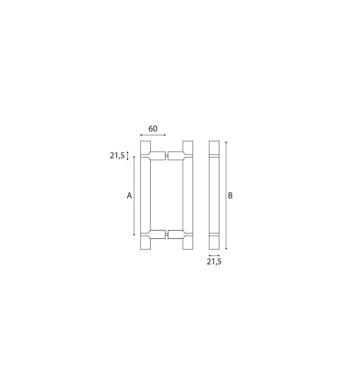 Poignée hauteur (B) 305, 480 ou 655 mm - diamètre 21.5 mm - Entraxe (A) 250, 425 ou 600 mm.