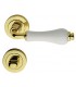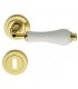 Paire de poignée porcelaine blanche série Dalia. Fonctions : Bec de cane - rosaces entrée de clé L - Conda/déconda.