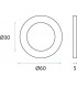 Forme ronde diamètre 60 mm, épaisseur 5 mm avec une découpe de diamètre 30 mm.