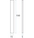 Forme rectangulaire hauteur 150 mm, largeur 15 mm, épaisseur 5 mm.